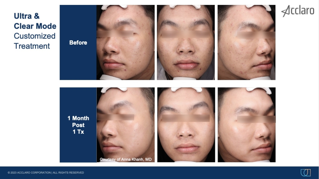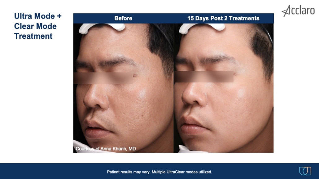 At the same time, the treatment stimulates the production of new collagen. You can expect acne scars to fade and healthy skin to resurface after a series of treatments.